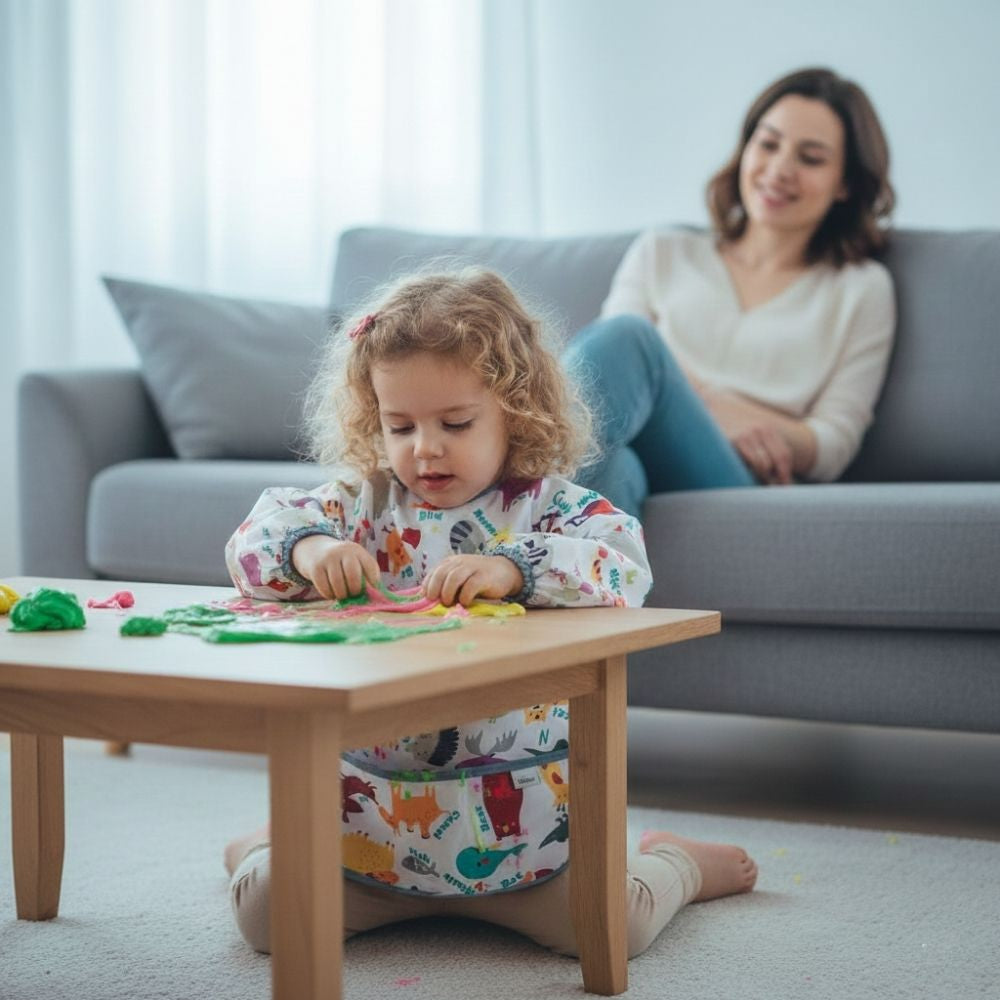 Ama müdahale etmezsen de sonuçlarından korkuyorsun. Loona, bu ikilemi ortadan kaldırır. Çocuğun dökmesine, dağıtmasına izin verirken kıyafetleri korur. Böylece ebeveyn oyunu yöneten değil, izleyen olur. Uyarılar azalır, oyun akışı bozulmaz. Çocuk daha özgür, ebeveyn daha rahat olur.