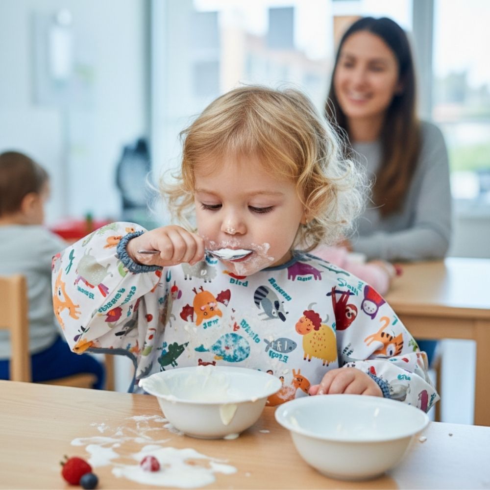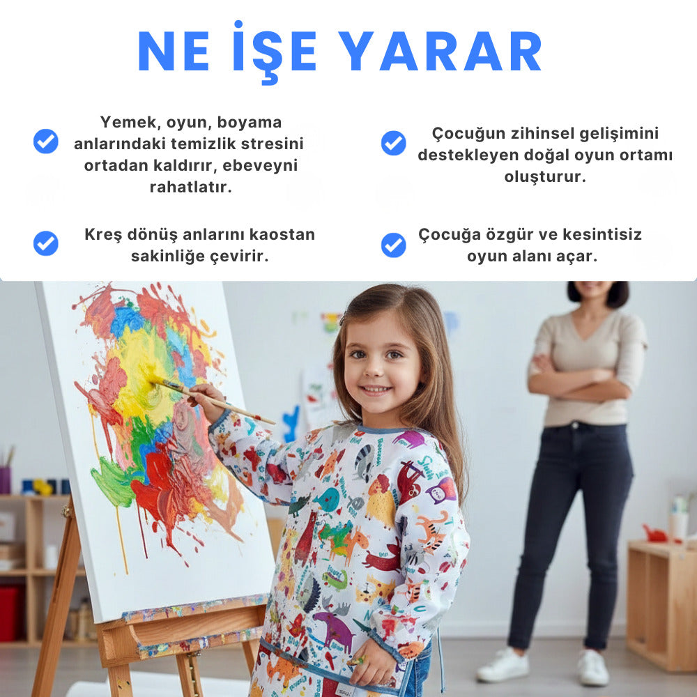 Kreşe giderken “acaba bugün kaçıncı kıyafet kirlenir” düşüncesi, çantaya sıkıştırılan ikinci üçüncü yedekler… Loona ile bu döngü kırılıyor. Yemek de yese, oyun da oynasa, üstü başı korunuyor. Eve dönüşte sürpriz yok, stres yok, ekstra iş yok. Sadece gününü yaşamış bir çocuk ve yorulmamış bir ebeveyn.