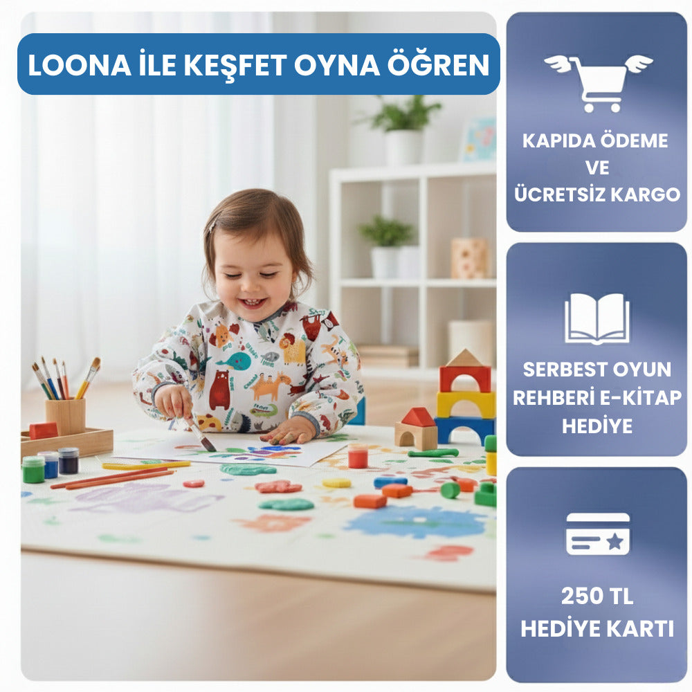 Özgür oyun; dikkat, problem çözme, duyusal regülasyon ve yaratıcılığın temelini oluşturur. Loona bu süreci temizlik stresiyle boğmak yerine, çocuğun gelişimine hizmet eden sakin ve güvenli bir zemin oluşturur.